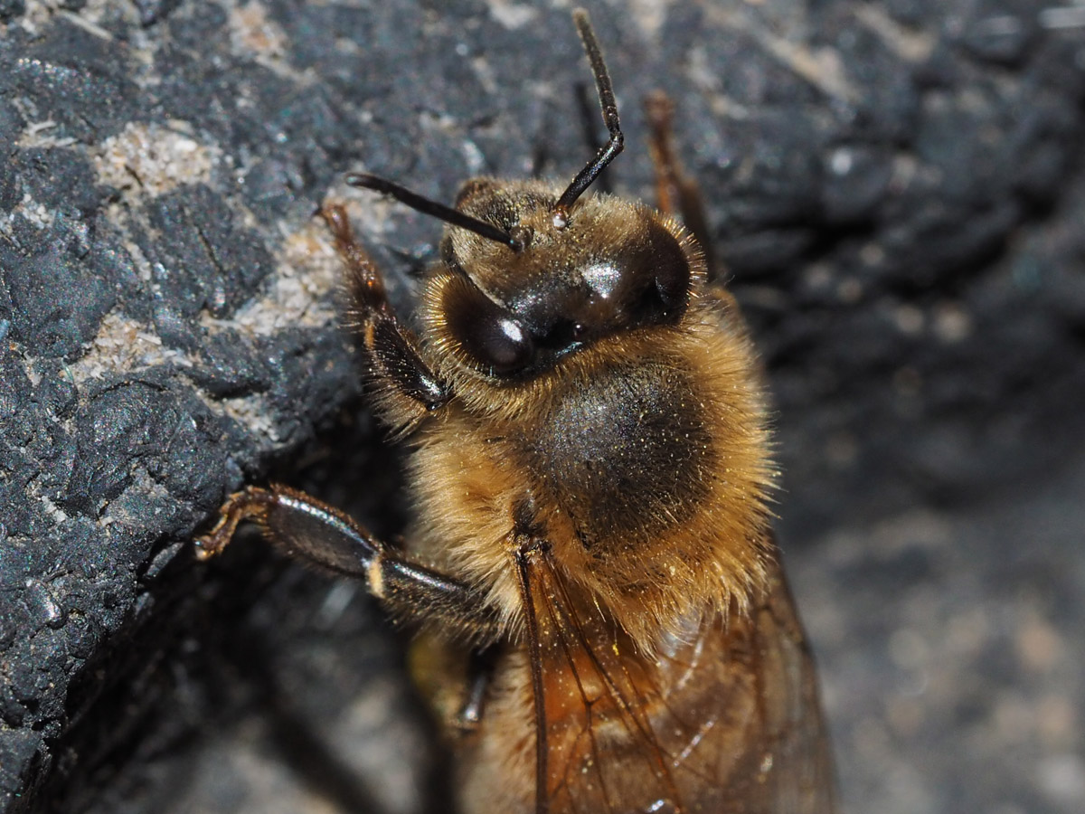 On a recent trip, miserable because of the heat of the tropics and the weight of my camera gear, I vowed I was finished with full-sized SLRs. I decided I would follow my technician Wendy Porras in moving to Olympus micro four-thirds (mft) technology. After all, these mirrorless cameras are half the weight, size, and price of a SLR, but have amazingly good image quality. The attached photo of honey bee won’t win any prizes, but you can see how sharp the images can be (an exceedingly important consideration for those of us photographing small flies). My new camera also has in-body image stabilization, which gives me a higher percentage of successful, non-blurry images.